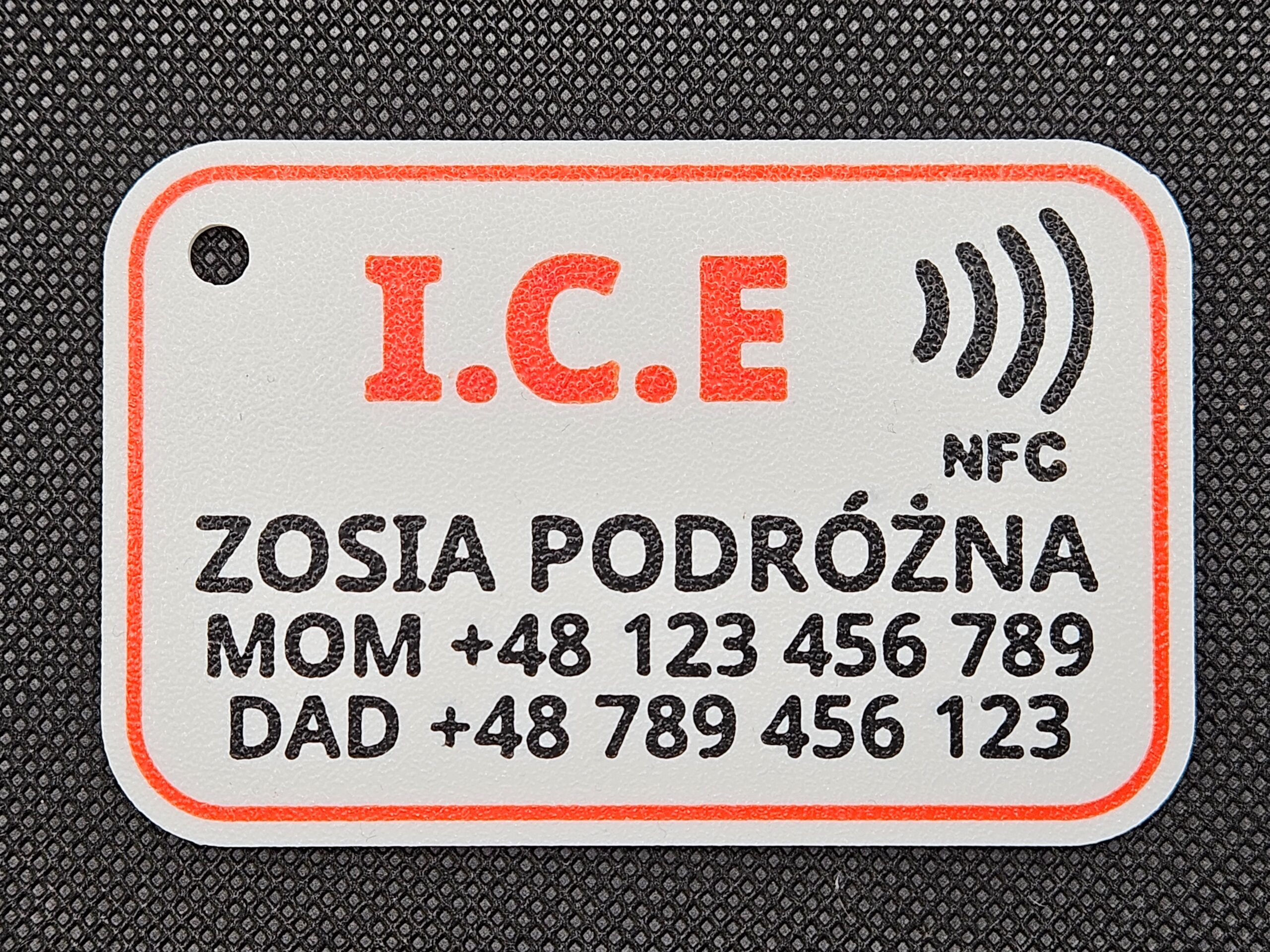 Karta ICE z NFC to praktyczne zabezpieczenie dla dziecka na wyjazdy, wakacje, kolonie, lotniska, narty czy codzienne wyjścia.