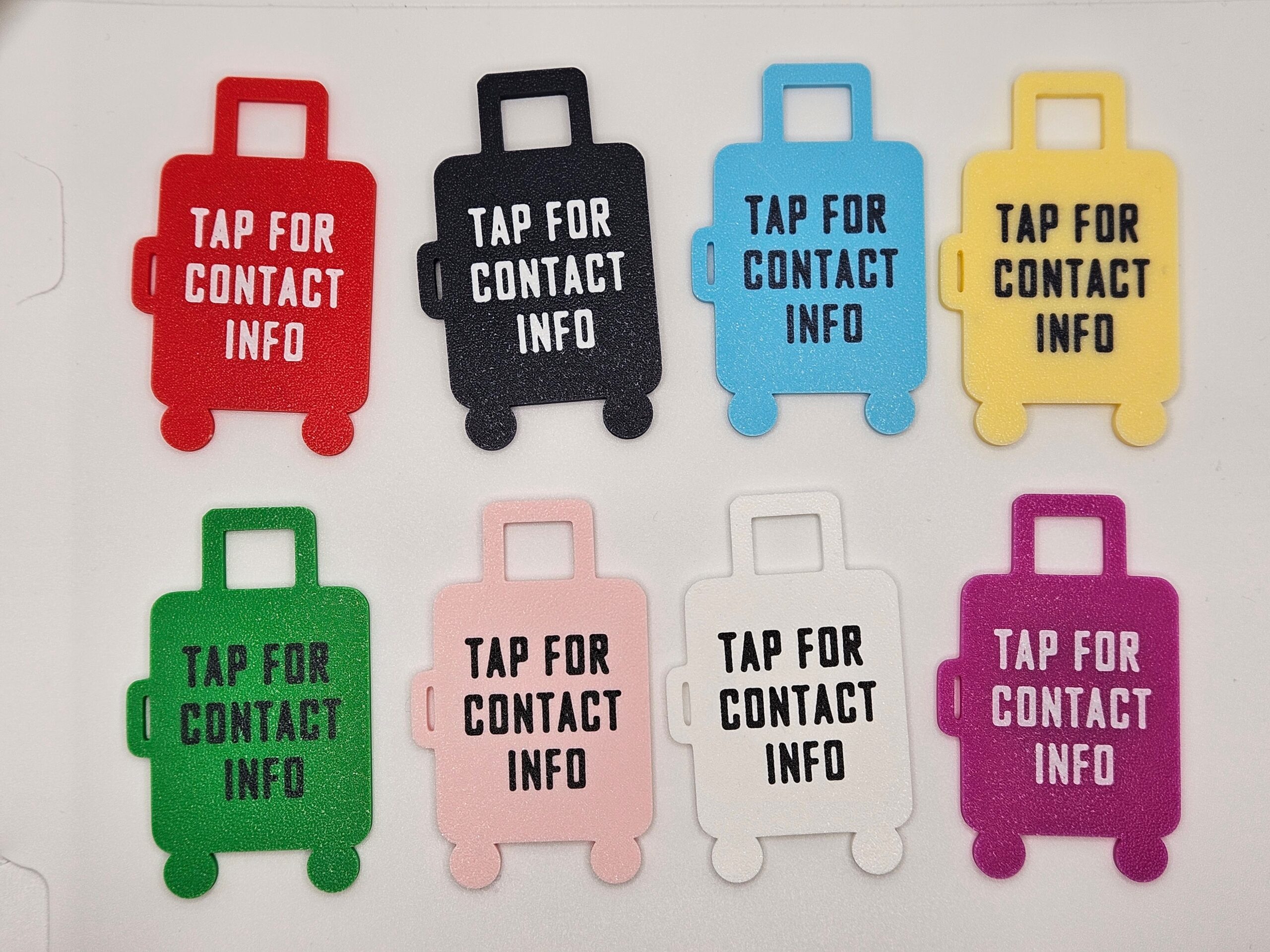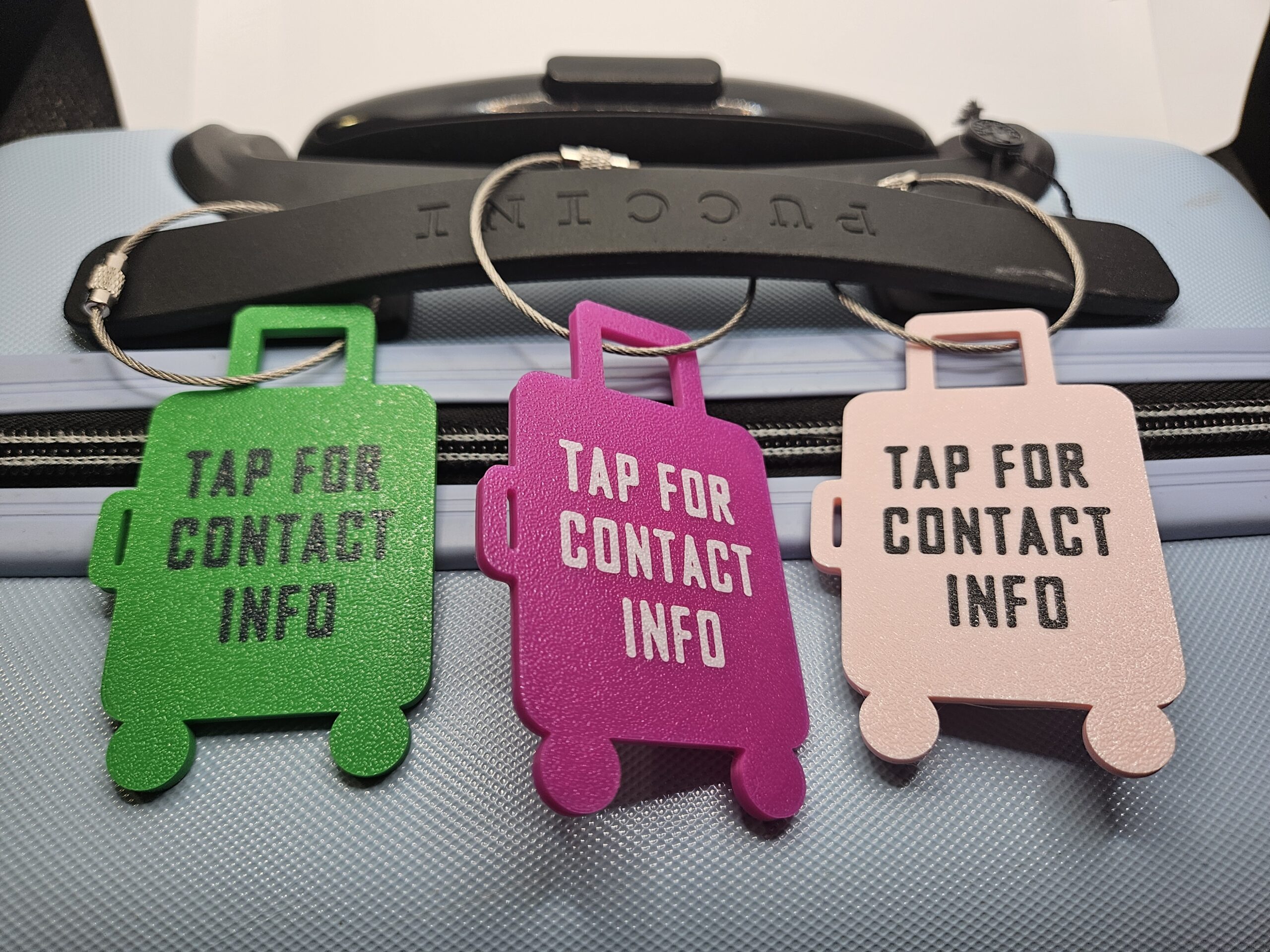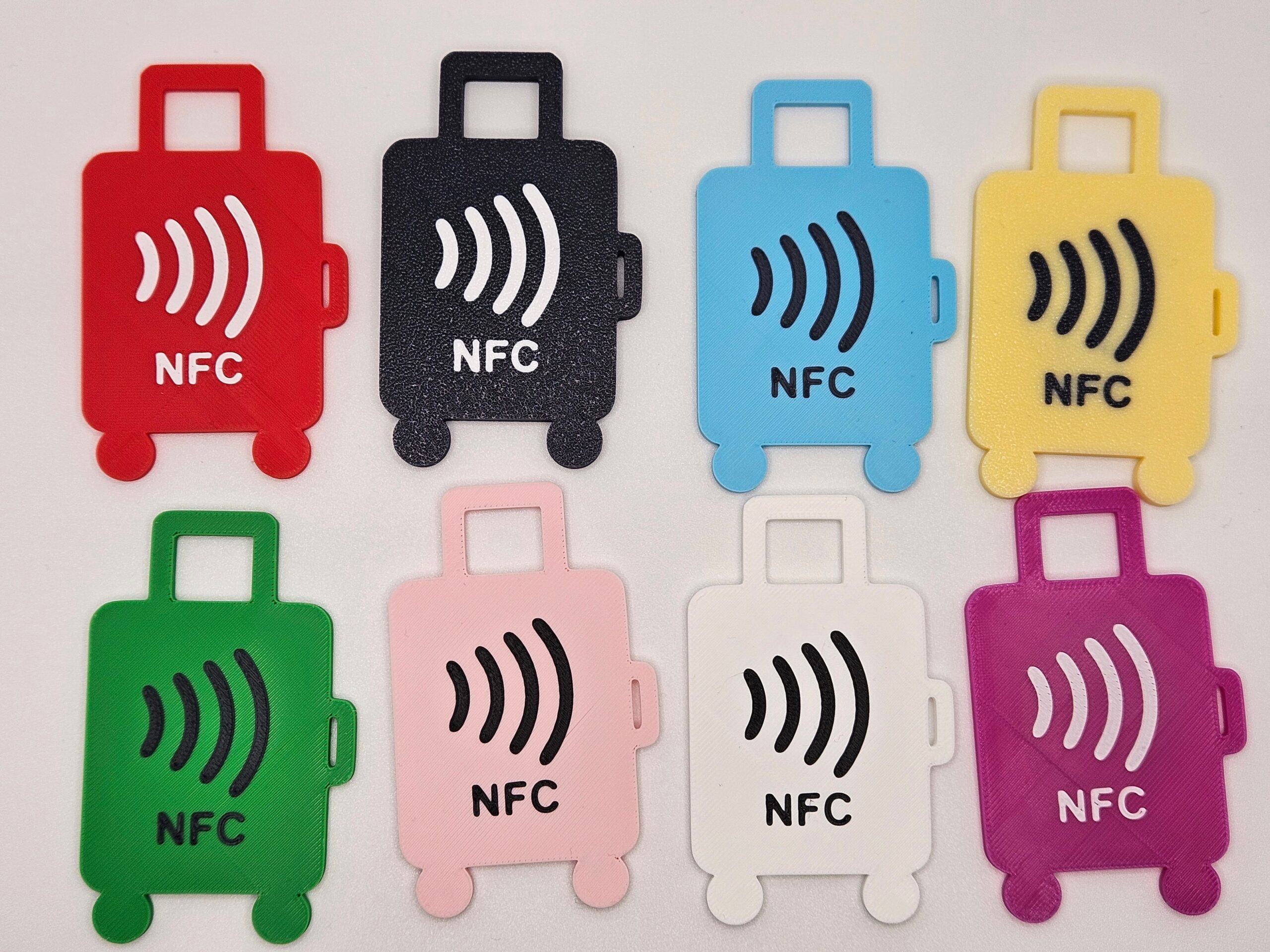 Zawieszka na bagaż z NFC wykonana w technologii druku 3D z biodegradowalnego PLA.